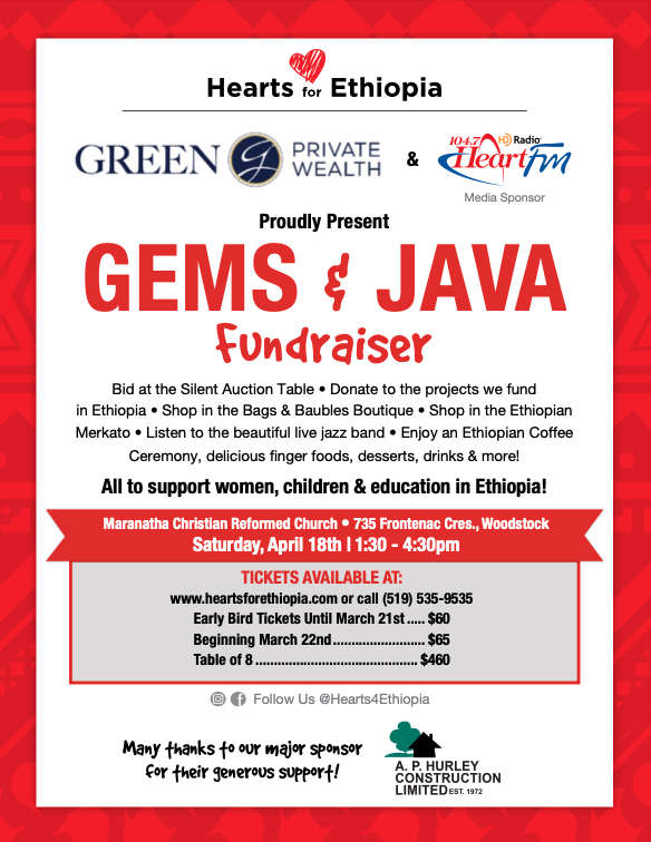 Gems & Java is an incredible fundraiser that empowers women and children living in extreme poverty in Ethiopia through education and life-changing projects. In this event, you will enjoy an authentic Ethiopian Coffee Ceremony, a vibrant marketplace, delicious foods and sweets, a magnificent silent auction and more! Show your support by purchasing a ticket today!