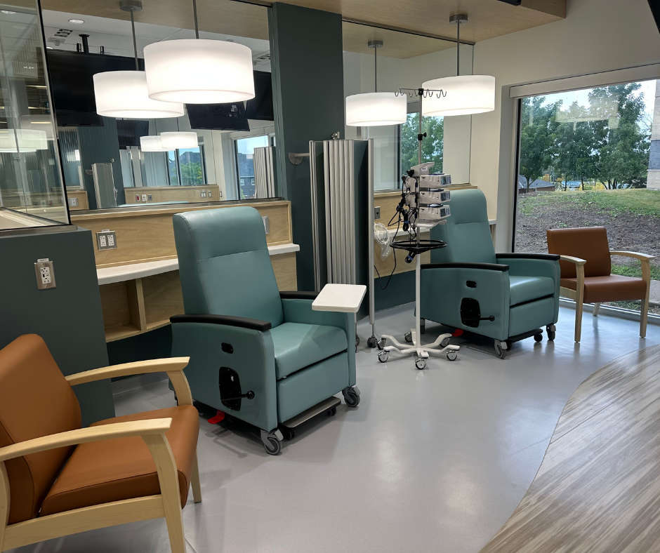 "The renovation has been 14 months in undertaking. We started the design process long before that with our patient advisors Nora and Deb who have been longtime chemotherapy patients at the hospital."
